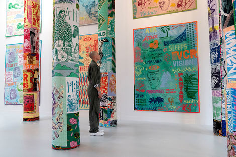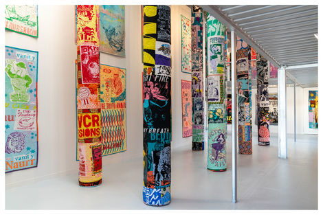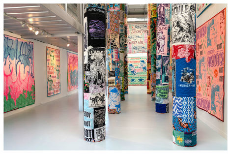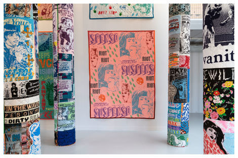 FAILE’s fascination with transformation and form is central to their fabric works, where they explore the tension between preserving fragments of the past and weaving them into new stories. Like layers of posters, beauty ads, and event flyers that cling to the structures of New York, these works form a dynamic tapestry of time.