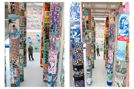 In A Riot of Existence, eight towering quilted fabric columns, traditionally symbols of strength and permanence, are transformed into dynamic, colorful structures that reflect the fluid, ever-changing nature of life. Each column, composed of myriad fabrics and patterns, represents a unique fragment of existence, celebrating the complexity of our experiences, memory, and form. The juxtaposition of rigid classical forms with textured, flowing fabric illustrates the tension and harmony inherent in the riot of existence.
