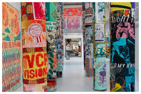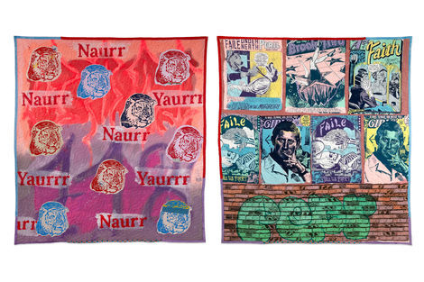 FAILE’s fascination with transformation and form is central to their fabric works, where they explore the tension between preserving fragments of the past and weaving them into new stories. Like layers of posters, beauty ads, and event flyers that cling to the structures of New York, these works form a dynamic tapestry of time.